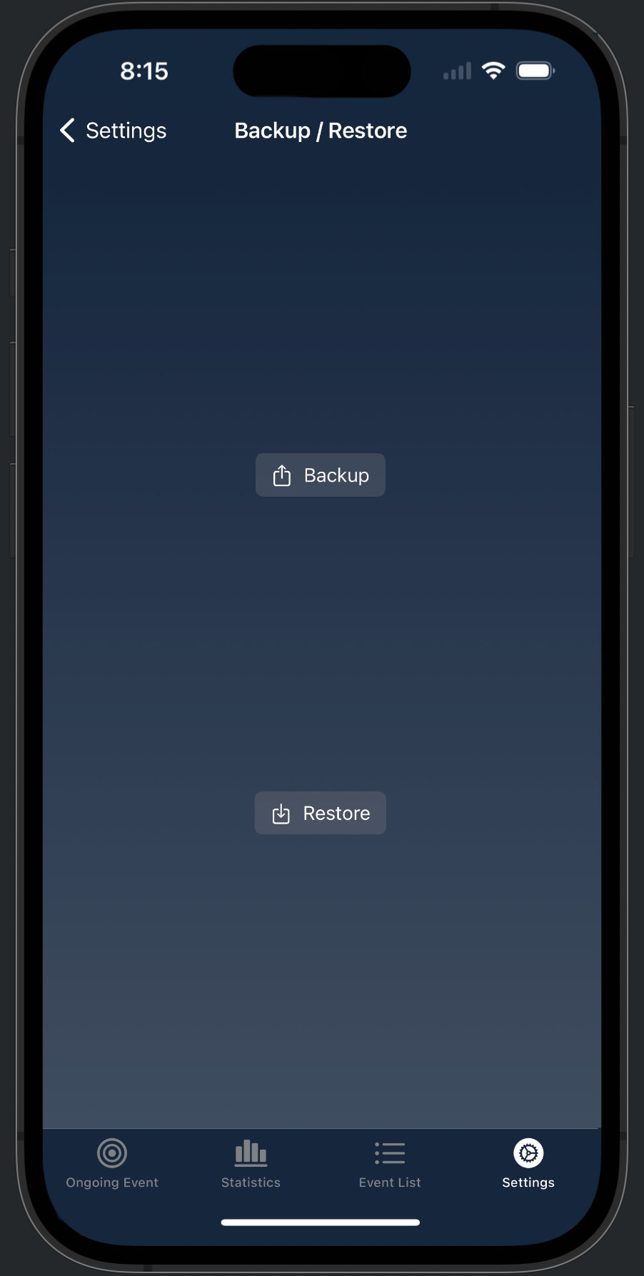 Go to the Settings menu and tap Backup/Restore item. After that you will have possibility to either backup or restore your saved data. While doing the backup you will be prompted to select where do you want to store your data - iCloud Drive or any other online repository is the very best choice as you will be able to access it from anywhere. The file is named 'backup-year_month_day-hour-minute-second' but you can change it to any other name which suits you best.