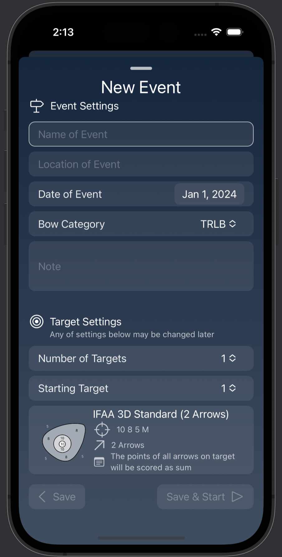 Tap on Scoring strategy to select most appropriate one for You. In case You're going to shoot different targets there's possibility to change the Scoring strategy target by target during the Event.